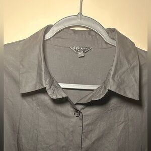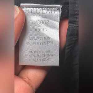 Chic black dress with unique white feather pattern. Long sleeves and button-up style.