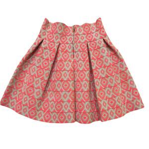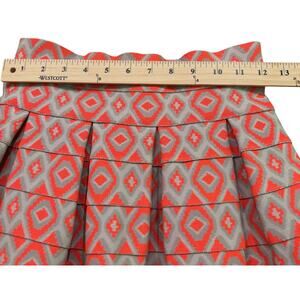 Beulah Style Pleated Tiers Elastic Mini Skirt Orange Silver Geometric Small