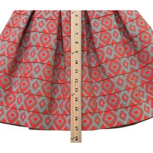 Beulah Style Pleated Tiered Elastic Mini Skirt in a Bright Orange & Silver Diamond Geometric Pattern