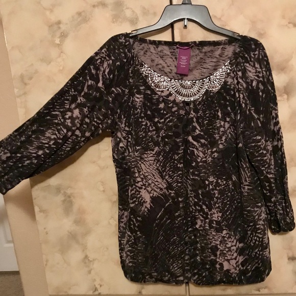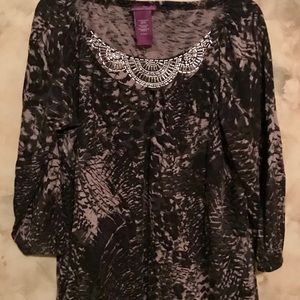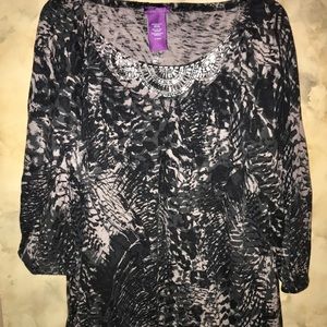 Black and White blouse with elastic bottom. Excellent condition - Great for everyday use or dress it up for a night on the town