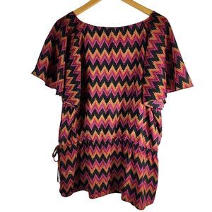 Beverly Drive Pink And Black Chevron Tie Waist Batwing Blouse