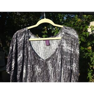 Keywords: Beverly Drive, snake print top, womens blouse, plus size blouse, dolman sleeve top, v-neck blouse, gray and white, casual top, party top, stylish blouse, womens fashion, top, blouse
