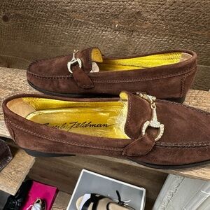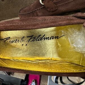 Beverly Feldman Brown Suede Loafers with Crystal Bit Detail – Size 37.5