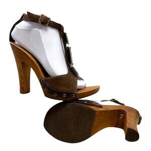 Beverly Feldman Wooden Heel T-Strap Sandals