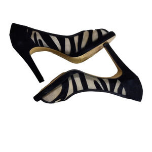 Beverly Feldman Honey2 Black Suede and Mesh Peep Toe Heels