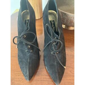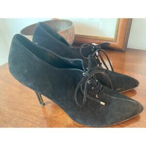 Beverly Feldman ~ Lace-Up Black Suede High Heels Oxford ~ Sz 40 ~ Ladylike