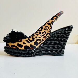 Beverly Feldman Leopard Print Wedge Sandal Sz 6M