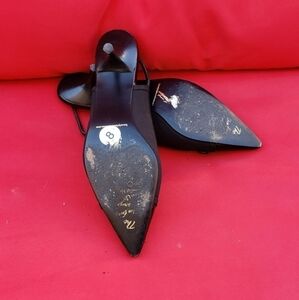Beverly Feldman Slingback Black Patent and Fabric & Bow ...heels