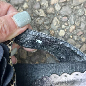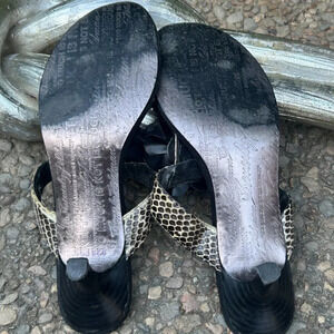 Beverly Feldman Snakeskin Black Rose Floral Thong Heeled Sandals Size 7