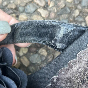 Pre-owned condition with minor visible wear (wear on the insole footbed and one heel tip needs to be fixed) but lots of life left.