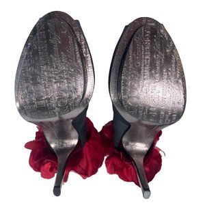 Elevate your style with Beverly Feldman Women's Black Peep Toe Platforms Sz 8. Perfect blend of chic and elegant, these high heels feature a beautiful red rose accent for a captivating feminine touch. They are in NWB with no scuffs, scratches, or stains - please see pictures.