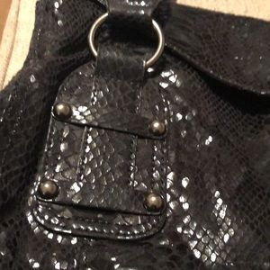Beverly Feldman black BEAUTIFUL snakeskin hobo shoulder bag!!! You can hold everything even the kitchen sink this bag is so big but AHHMAZING!!!!