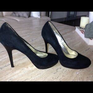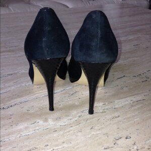 Beverly Feldman suede snake embossed black Heels Retro Glam!!