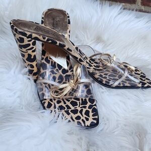 Beverly Feldman vintage metallic cheetah slides 10 NEW