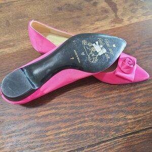 Beautiful hot pink satin flats with flower bow detail in a size 7. Made in spain with the classic luxury style. Worn once and in perfect condition.