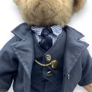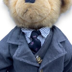 Well dressed bear down to his suspenders. Nice detailing on buttons. Has attached "watch on chain". Real working buttons on jacket and vest.