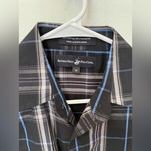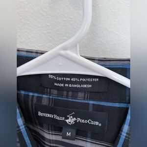 Beverly Hills Men’s Blue and Black Short Sleeve Button Down Shirt