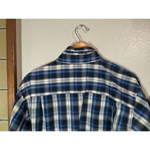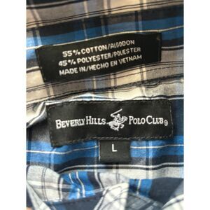 Beverly Hills Polo Club Black Label Blue Plaid Button Down Shirt Size L in good condition pet friendly non smoking home.