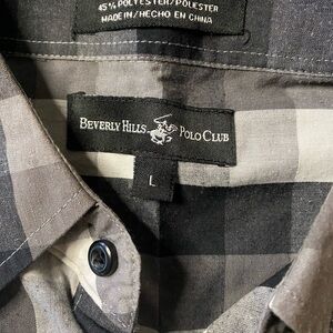 Beverly Hills Polo Club Black White Flannel Large Button Down Large