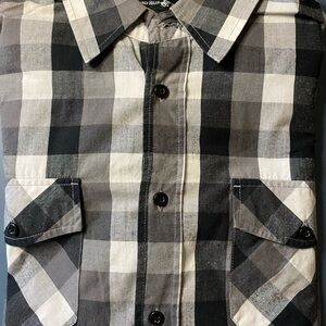 White and Black Check Flannel cotton long sleeve, button down shirt