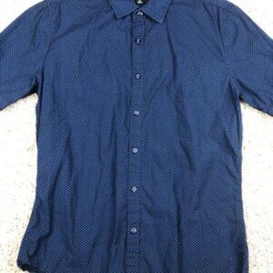Beverly Hills Polo Club Blue Short Sleeve Button Up Shirt Small Casual Geometric