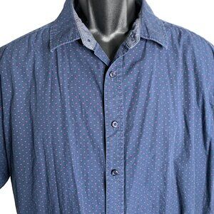 Beverly Hills Polo Club Button Up Shirt 2XL Blue Triangles Short Sleeves Cotton