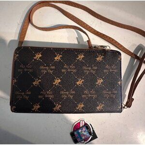 Beverly Hills Polo Club Crossbody Bag & Wallet Combo Holds Cell Phone Brown Pa