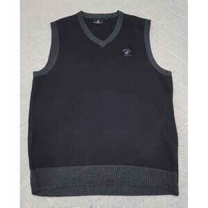 Beverly Hills Polo Club Men's Black Knitted Sweater Vest Pullover V Neck Size XL