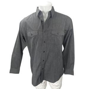 Beverly Hills Polo Club Men's Dark Gray Long Sleeve Button Up Shirt Top Size L