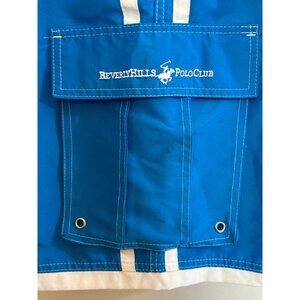 Beverly Hills Polo Club Men’s Swim Trunks M Blue White Trim Cargo Pockets Logo