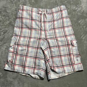 Keywords: swim trunks, mens swimwear, plaid shorts, beach shorts, pool shorts, cargo shorts, drawstring shorts, summer shorts, vacation wear, beach wear, Beverly Hills Polo Club, XL, mens XL shorts, plaid swim trunks