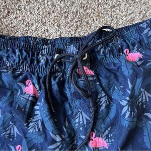 Beverly Hills Polo Club Navy Pink Flamingo Swim Trunks Size Large
