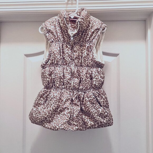 Beverly Hills Princess Girls Cheetah Print Puffy Vest-Size 7-8-Pockets-Tan/Cream