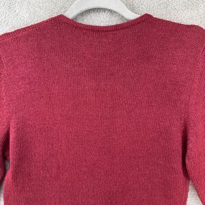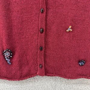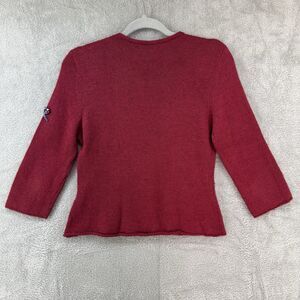 Beverly Mehe Sweater S Red Silk Knit Cardigan Button Front 3/4 Sleeve Rhinestone