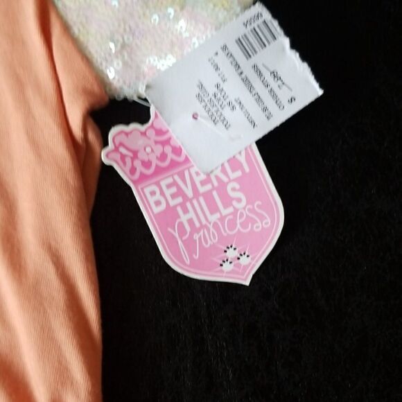 Peach Cotton/poly long t-shirt with white Iridescent Sequin sleeves,NWT