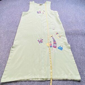 Beverly's Jumper Dress 14 Maxi Green Appliqué Purse Sandals Shopping Coastal Vtg