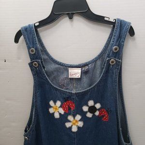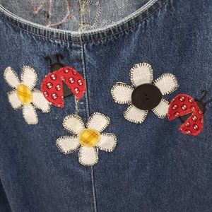 Beverly's Quilted Denim Flower Ladybug Romper Jumper Jeans S