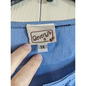 This Beverly's Women's jacket is a charming and elegant piece, perfect for adding a touch of sophistication to any outfit. In size 1X, it features a beautiful blue floral embroidered design that adds intricate detail and texture. The 3/4 sleeves and button-down front, along with the collared neckline, provide a classic and flattering silhouette. Ideal for layering, this jacket combines style and comfort, making it a versatile addition to your wardrobe for both casual and dressy occasions.