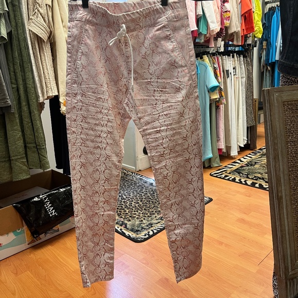 These miracle pants have the look of a soft, printed pant with the feel of a weightless legging. Perfect transitional pant for day to night wear. The elastic waist allows for an adjustable fit, wear them higher on the hip for a more fitted look or keep them scrunched low for a jogger feel.