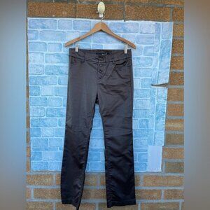 Retail $225 color chocolate brown, straight leg , exposed button fly style, front and back pockets stretch material in excellent condition