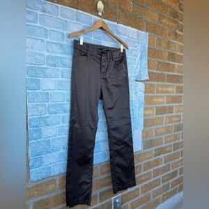 Retail $225 color chocolate brown, straight leg , exposed button fly style, front and back pockets stretch material in excellent condition