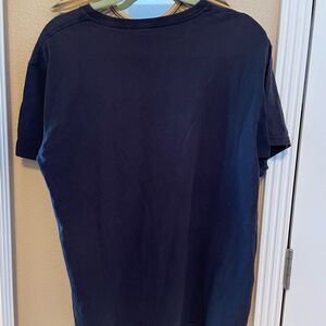 Older shirt! No stains or holes! Cool print! Print is cracked in some places looks distressed which I love! Tag is battered but it’s a size large. Cozy and soft!