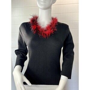 Beware VINTAGE Red Feather Collar Sweater Black Large Mob Wife Whimsy Goth