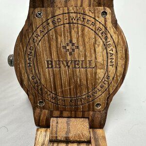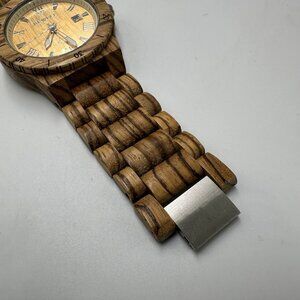 Bewell Mars Watch Men Brown Zebra Wood Date Window New Battery 7.25 Inch