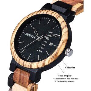 ✨Bewell Week & Date Quartz Mens Brown Wooden lightweight Unique Adjustable Watch