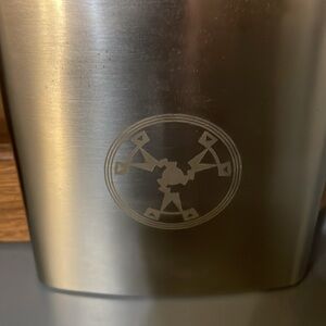 Bey Berk 5 oz stainless steel flask comes with a genuine leather case . The case has a spot on back as shown in photos, the flask has a design on the front , has some spots on back of flask see all photos please .