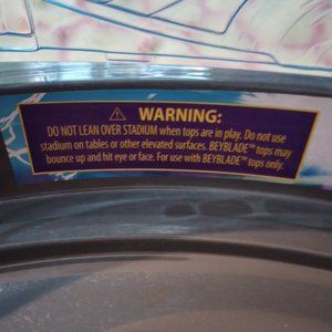 Beyblade Burst Surge Speedstorm Volt Knockout Battle Set in nice pre-owned condition. Complete battle game set with Beystadium, two battling top toys, and two launchers. The floor of the Beystadium has some minor scratches from use.