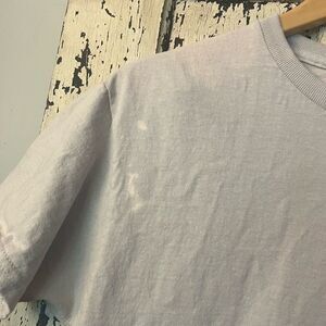 Stylish white t-shirt featuring a unique graphic design. Perfect for casual wear. Washed and fresh. Distressed look bleached areas w markings. No holes. From smoke free home. Bundle and save.