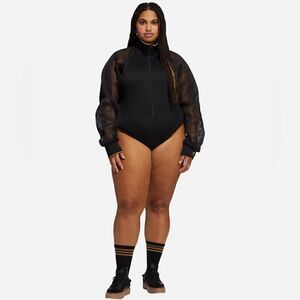 Brand new with tags attached bodysuit by Beyonce Ivy Park collab with Adidas. Sold out online. Sheer sleeves. Snap button crotch. Half zip at neck can be worn up or down.