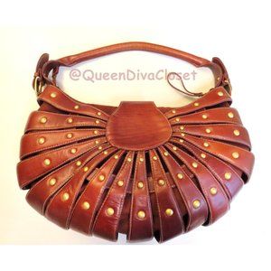 Beyonce's House Of Dereon Dark Red Burgundy Genuine Leather Hobo Satchel w Studs